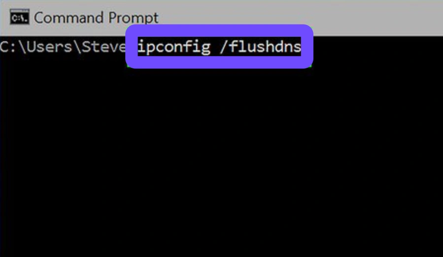 ipconfig /flushdns والضغط على Enter لمسح ذاكرة DNS.