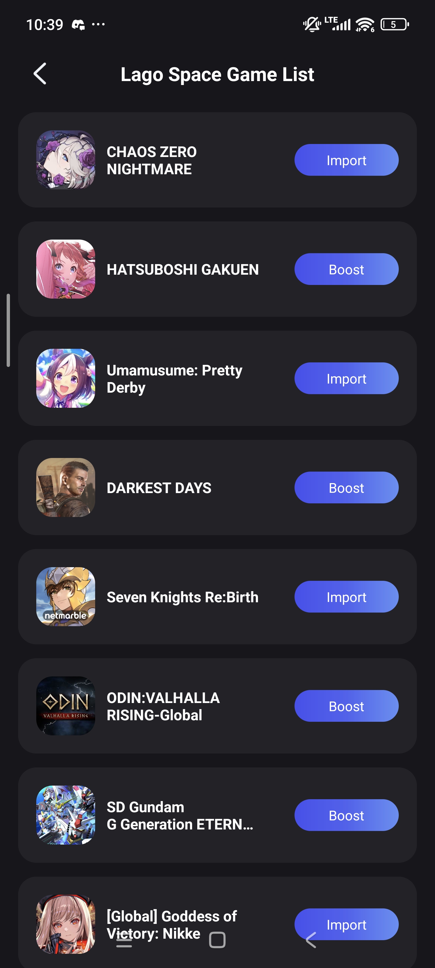 You can import games already installed on your phone, tap Import to bring them into Lago Space.