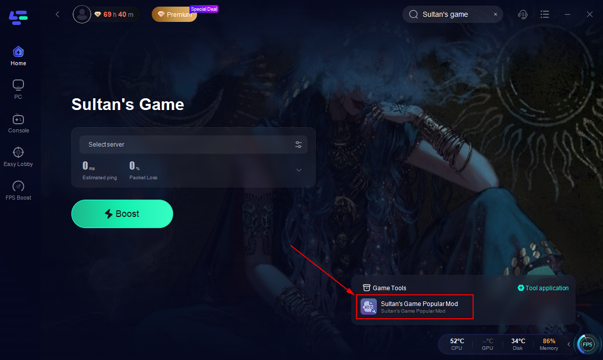 LagoFast isn’t just a mod manager—it’s a comprehensive gaming optimizer. Here’s how it elevates your Sultan's Game sessions: