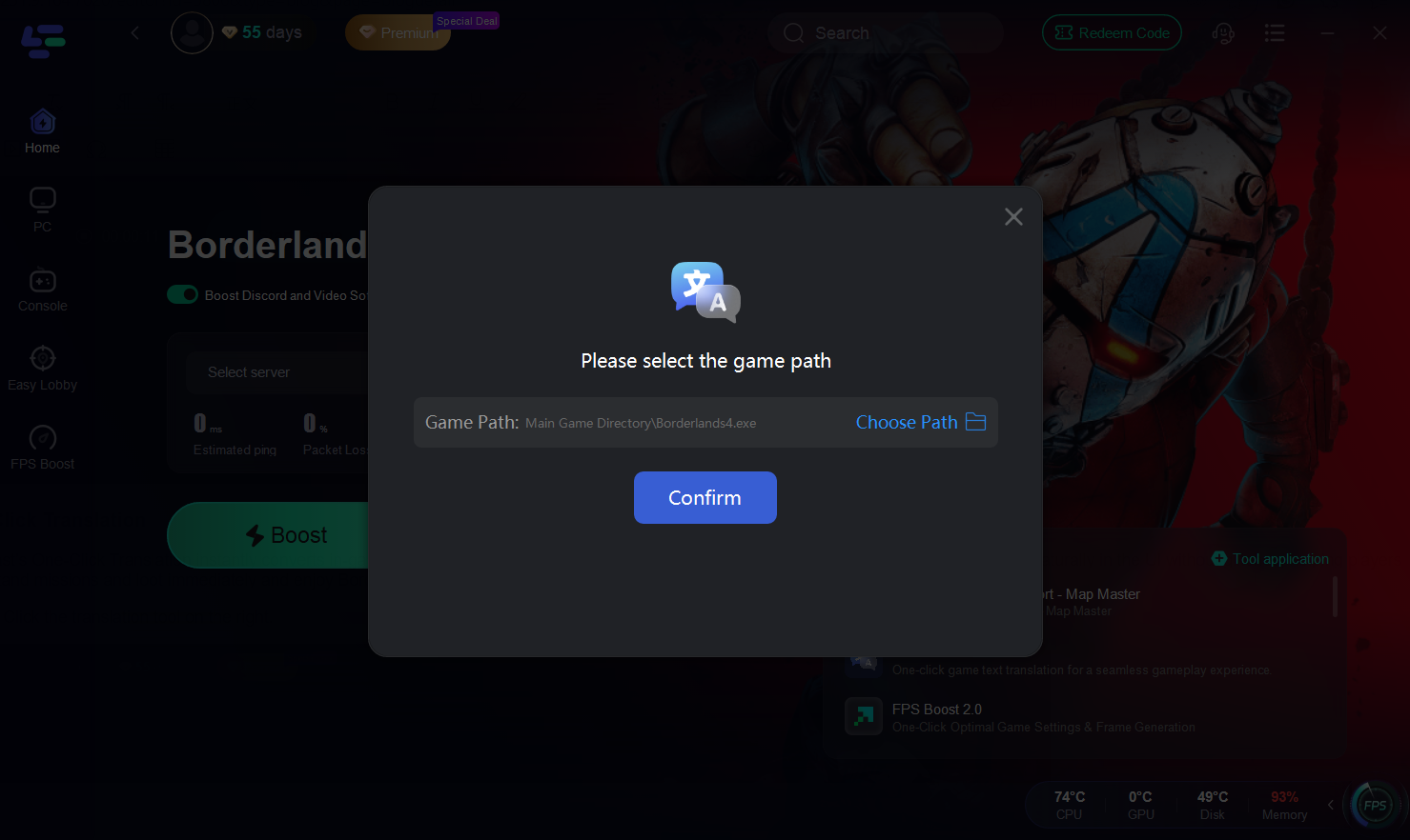 Step 2: Launch LagoFast, search for "Borderlands 4" in the client, and select the game.