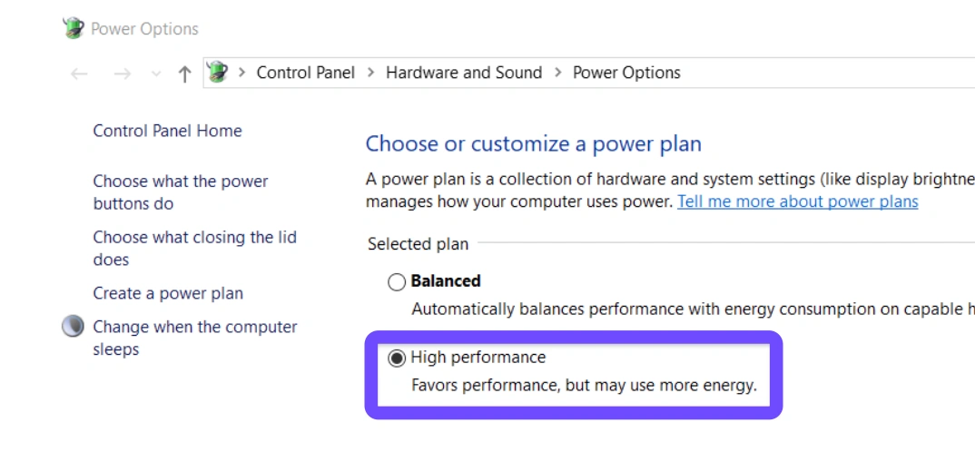 Step 2. Select "High Performance" or "Ultimate Performance" from the list.