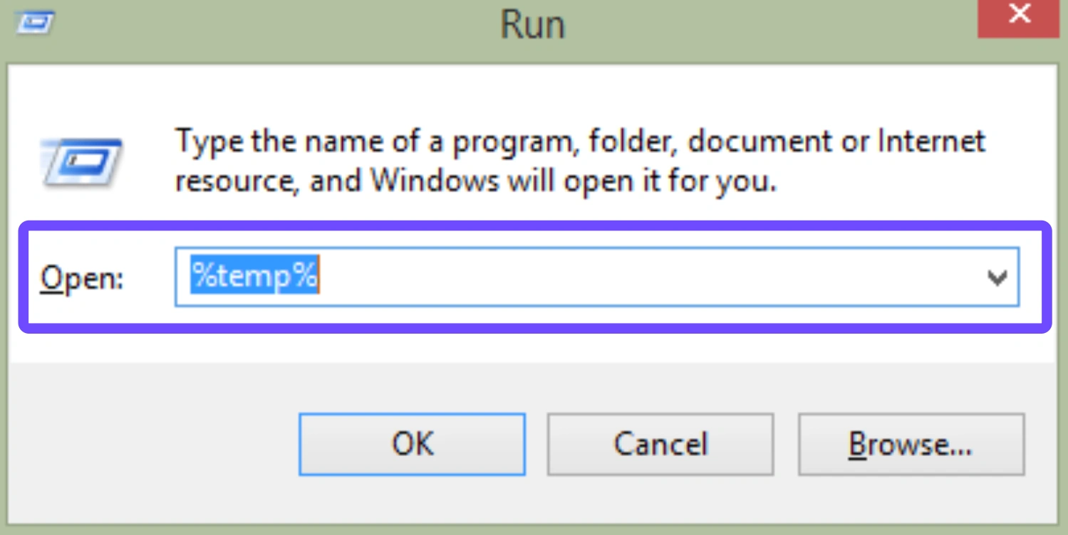 Step 3. Press Win + R, type %temp%, and delete all files in the folder.