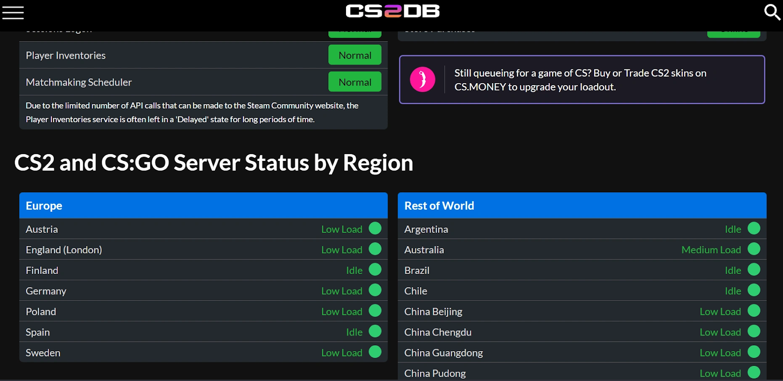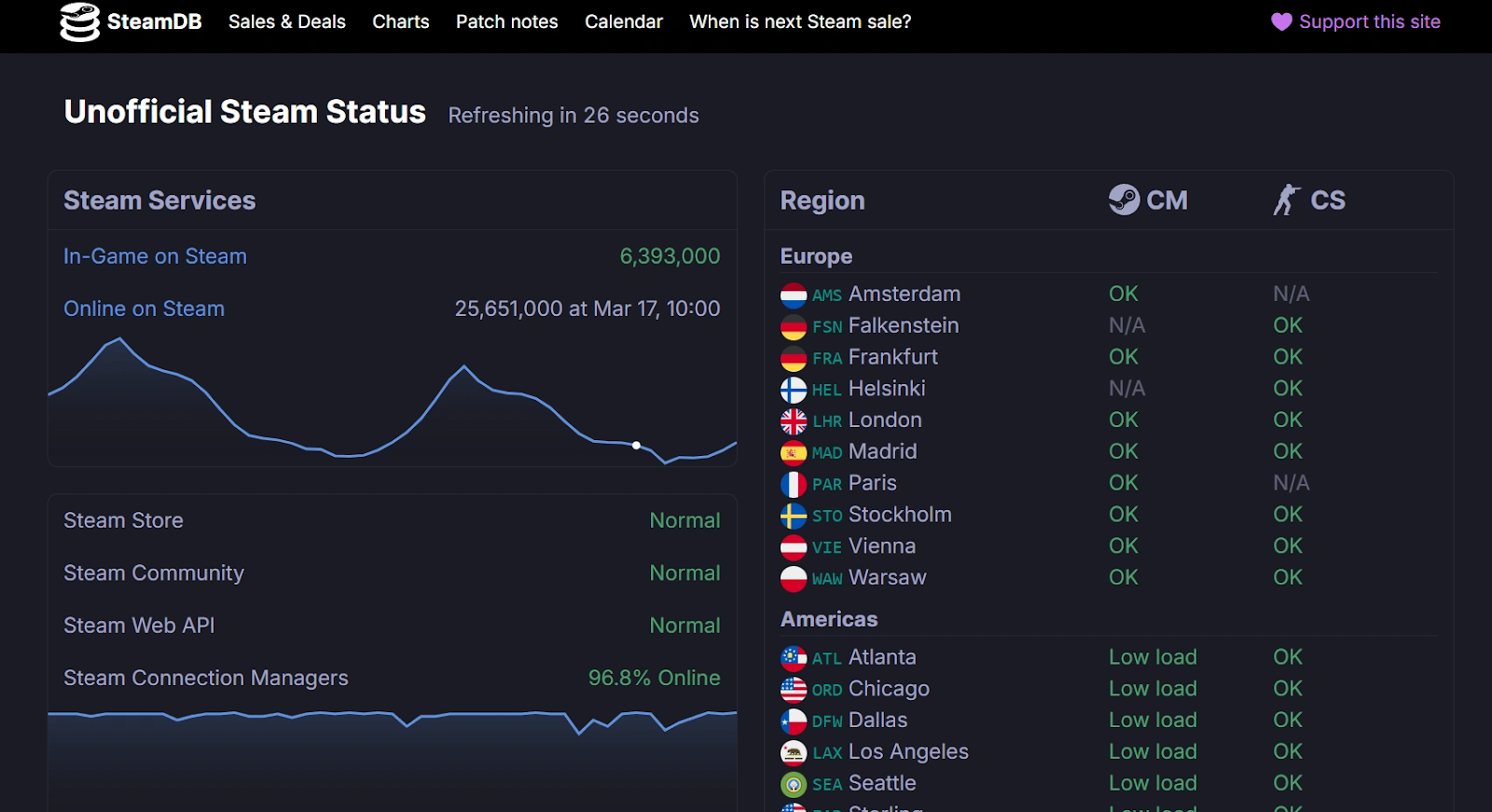 Step 2: If the "CS2 Services" or "Steam Community" are marked as "Down," no amount of troubleshooting will help.