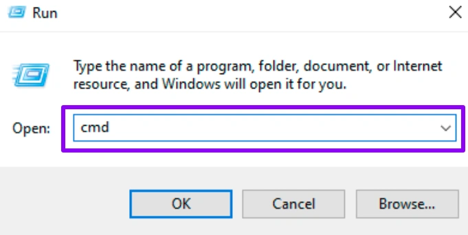 Step 2. Press Win + R, type cmd, and press Ctrl + Shift + Enter to run as administrator.