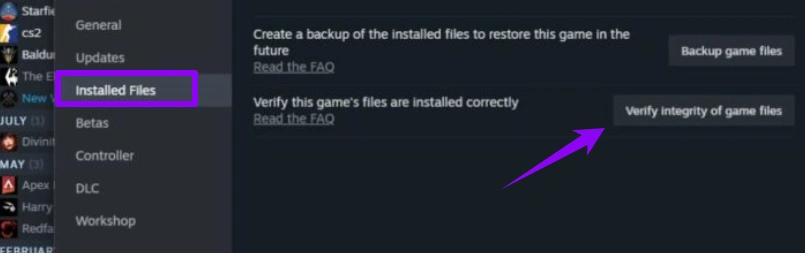 Step 4. Click Verify integrity of game files and wait for the process to hit 100%.