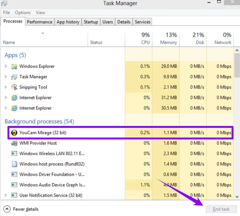 Step 2. End tasks for apps like CCleaner, Powershell, or lighting software (e.g., iCUE or Razer Synapse).