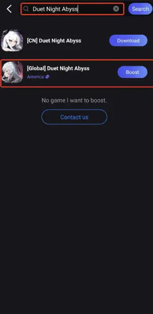 Step 1: Open LagoFast Mobile, search for “Duet Night Abyss,” and tap the Download button.