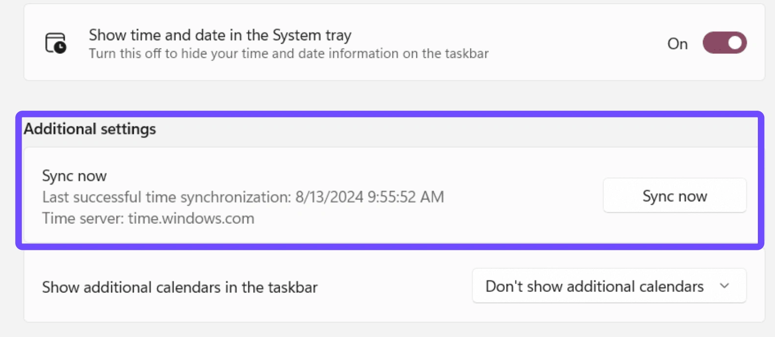 Step 3. Click the Sync now button under "Synchronize your clock."