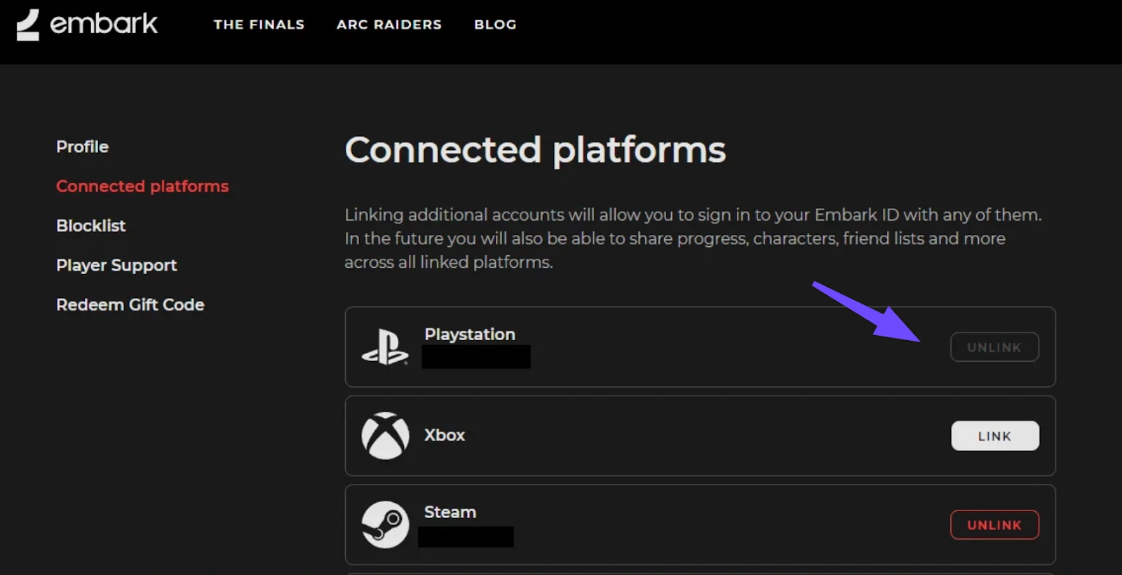 Step 3. Go to Connected Platforms and unlink your console account.