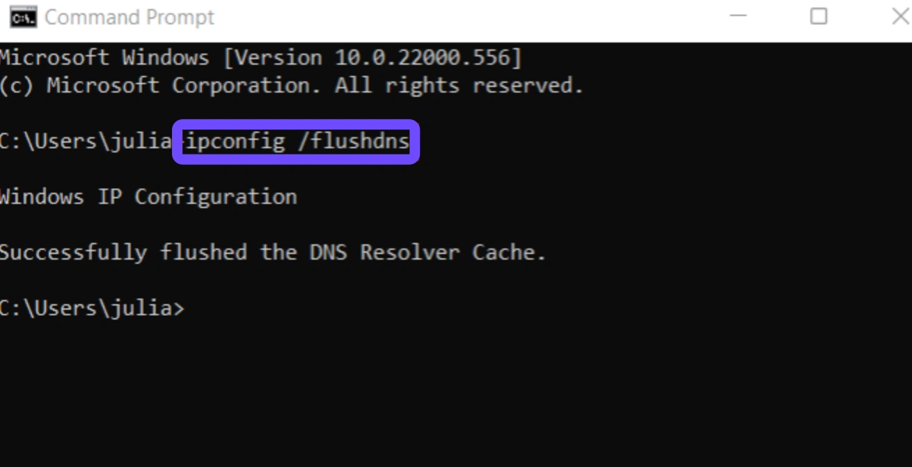Step 4. Wait for the confirmation message: "Successfully flushed the DNS Resolver Cache."