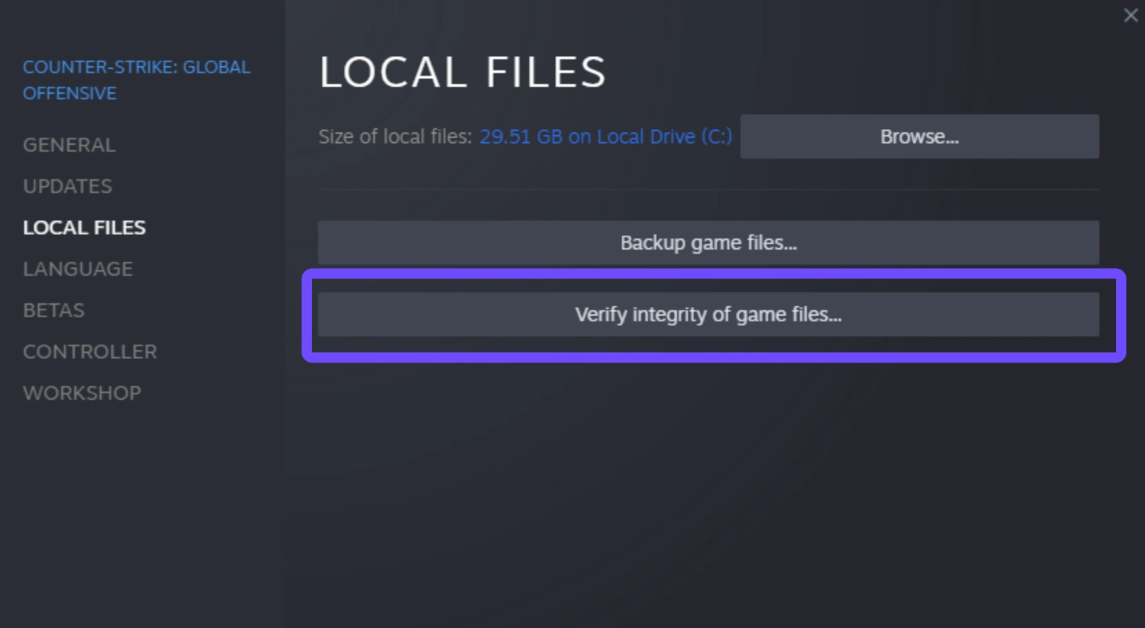 Step 4. Choose Local Files and click Verify Integrity of Game Files.