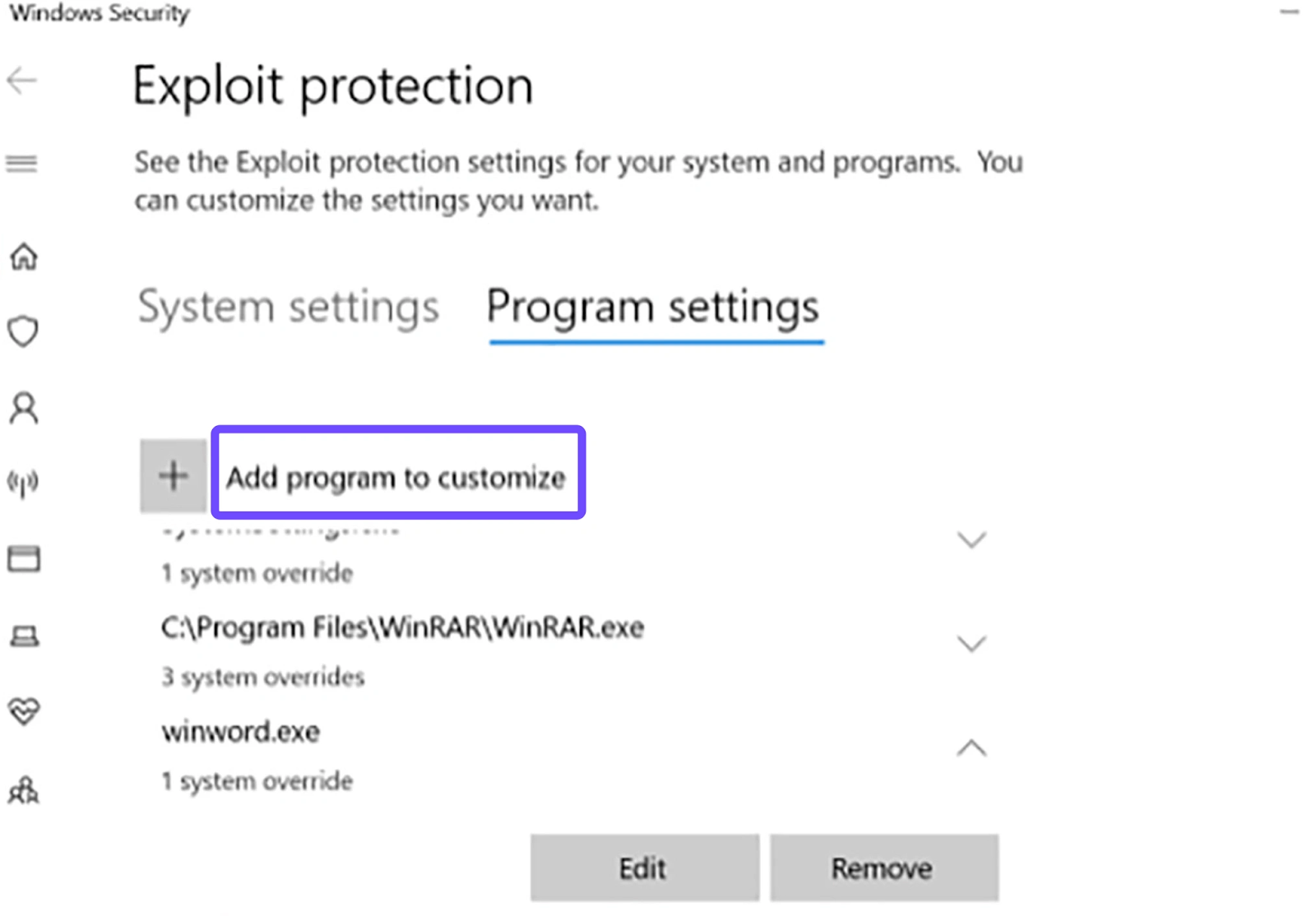 Step 2. Switch to the Program Settings tab and click "Add program to customize."