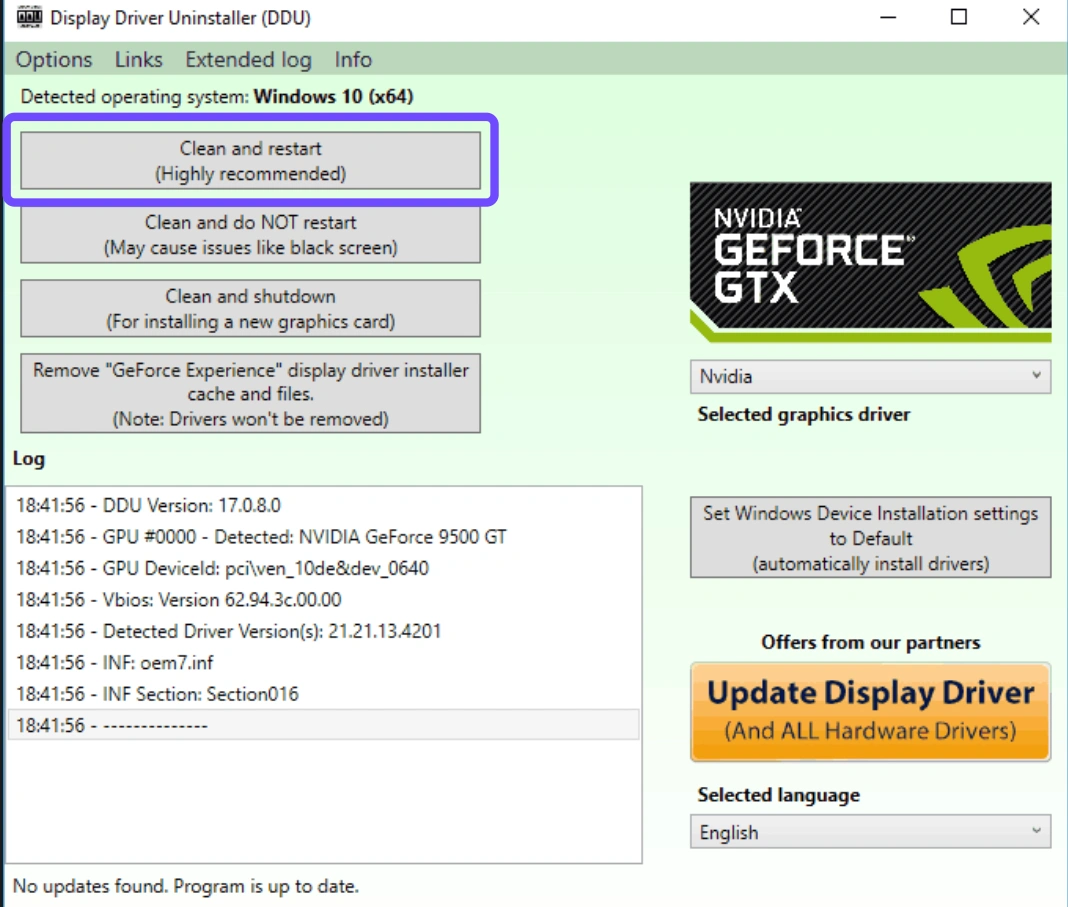 Step 3. Boot into Safe Mode and run DDU to wipe all existing graphics drivers.