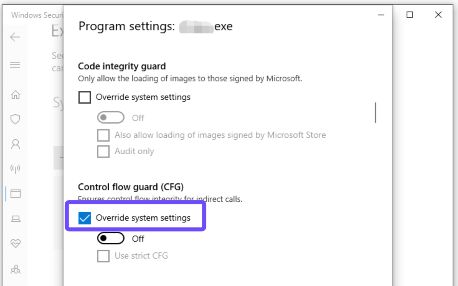 Step 4. Scroll down to Control Flow Guard (CFG).