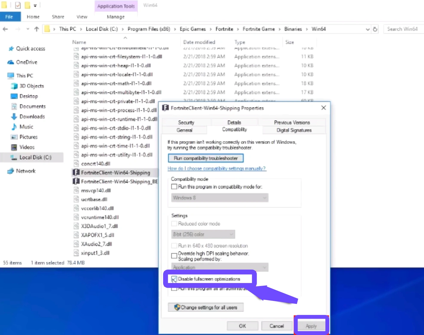 Step 1. Navigate to the Fortnite installation folder (usually FortniteGame\Binaries\Win64).