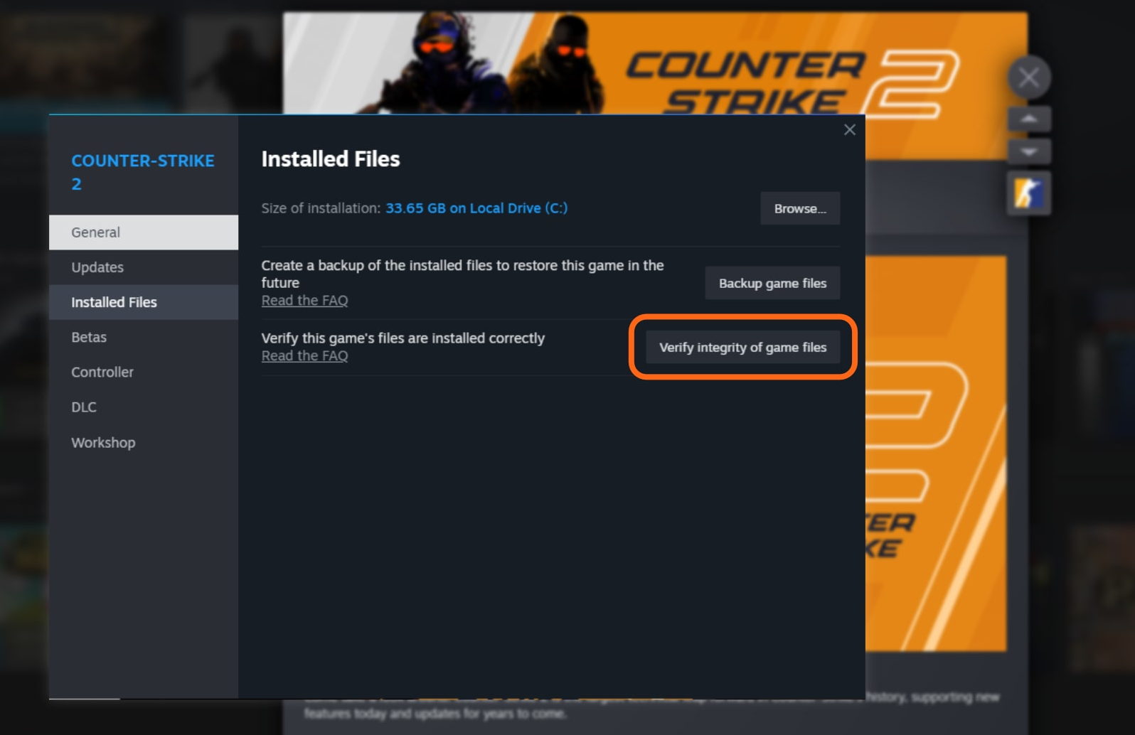 Result: Steam repairs damaged files that may cause CS2 server reservation error.