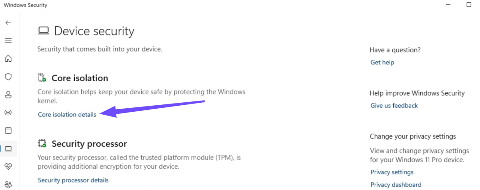 Step 4. Under Core Isolation, open Core isolation details.