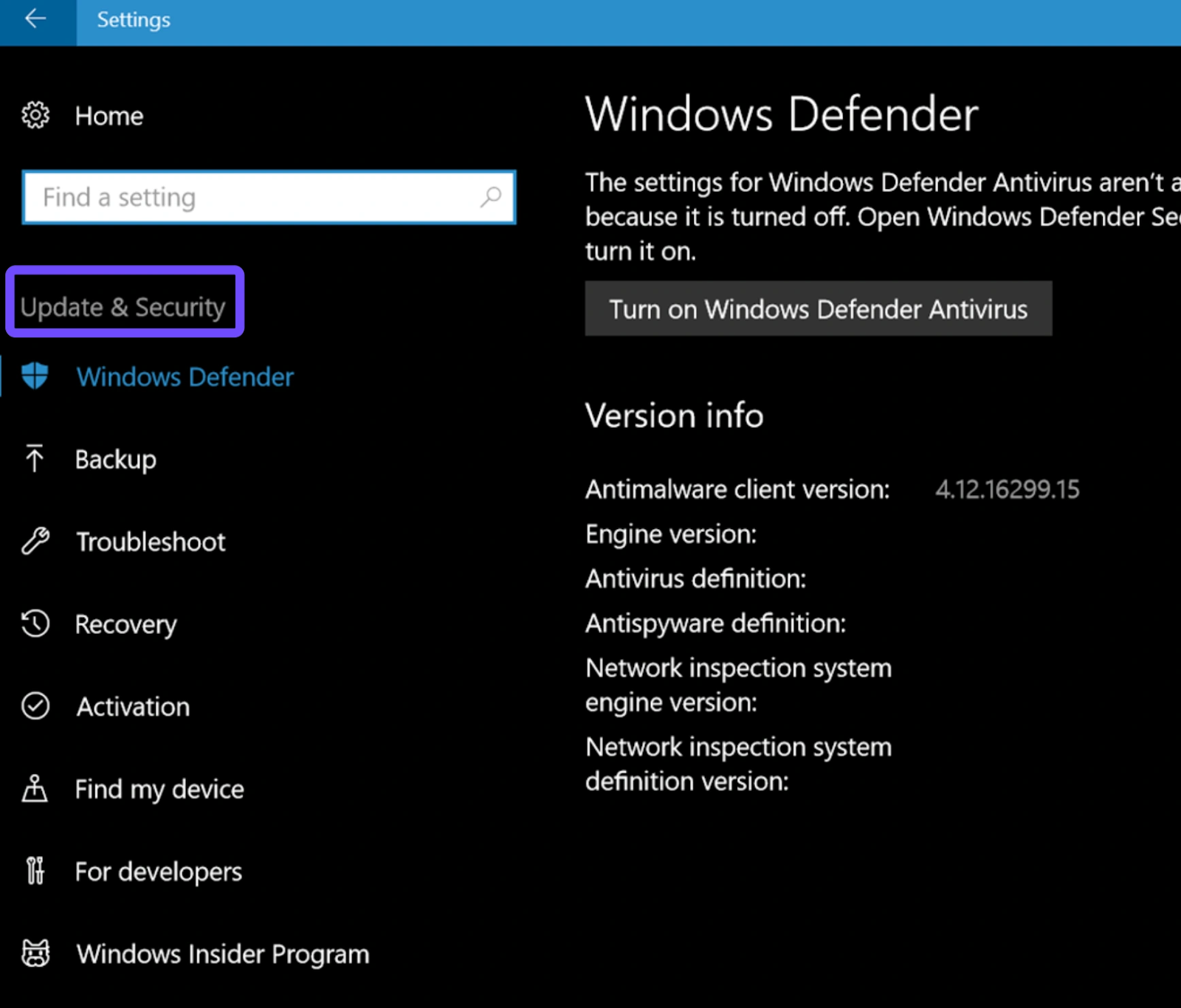 Step 2. Navigate to Update & Security.