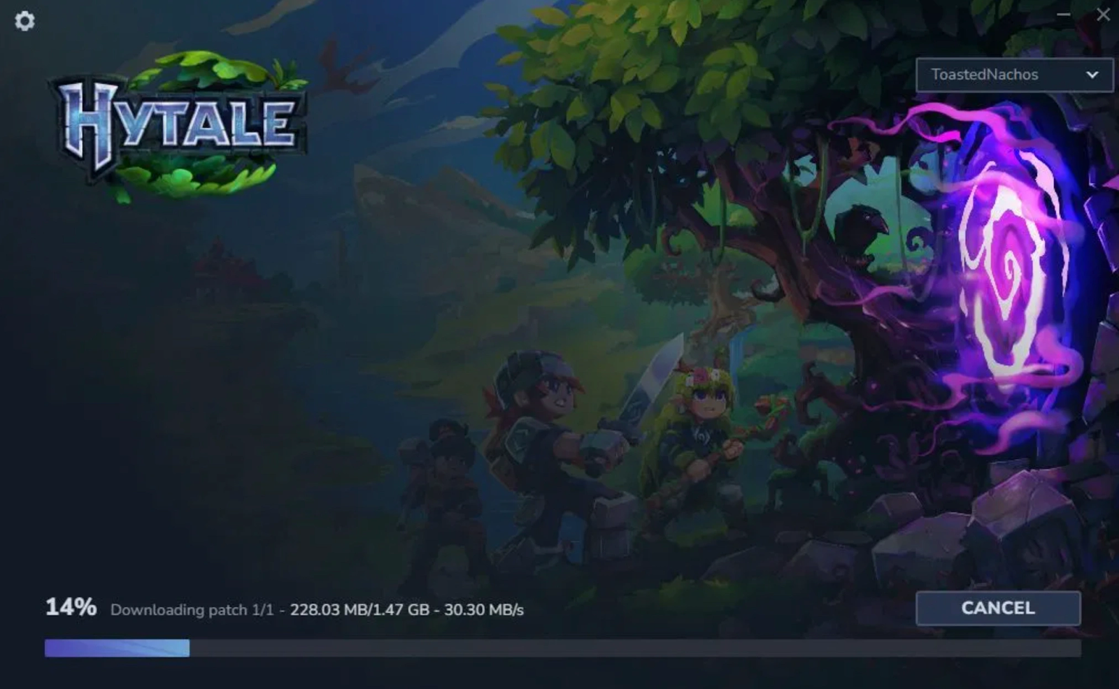 The Hytale launcher retains progress between attempts, so restarting does not reset the entire download.