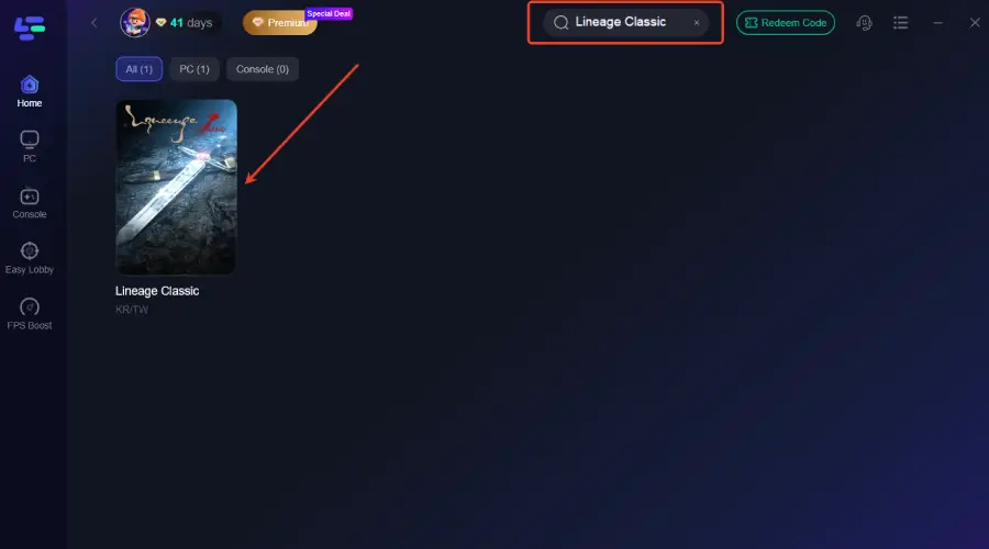 Step 2: After installation, search "Lineage Classic" in the search bar and select the game.