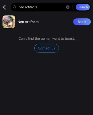 Step 1: Open LagoFast Mobile, search for "Neo Artifacts," and select it.
