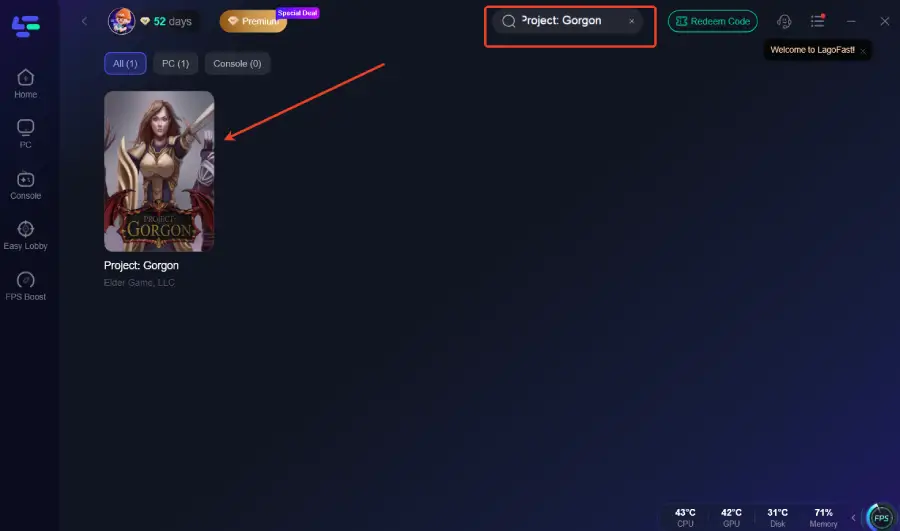 Step 2: After installation, search "Project: Gorgon" in the search bar and select the game.