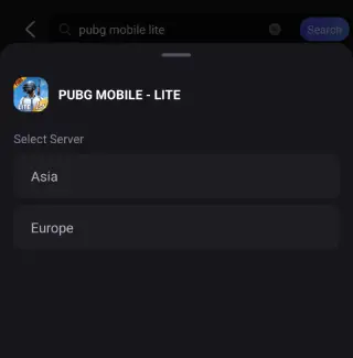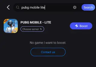 Step 3: Open LagoFast Mobile and search PUBG LITE in its search bar (Take the global version for an example; there are also different versions of PUBG, you can choose the preferred version according to your needs).
