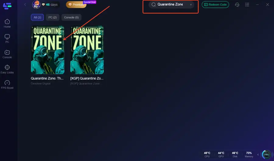 Step 2. Launch LagoFast, type “Quarantine Zone: The Last Check” in the search bar, and click the game from the results.