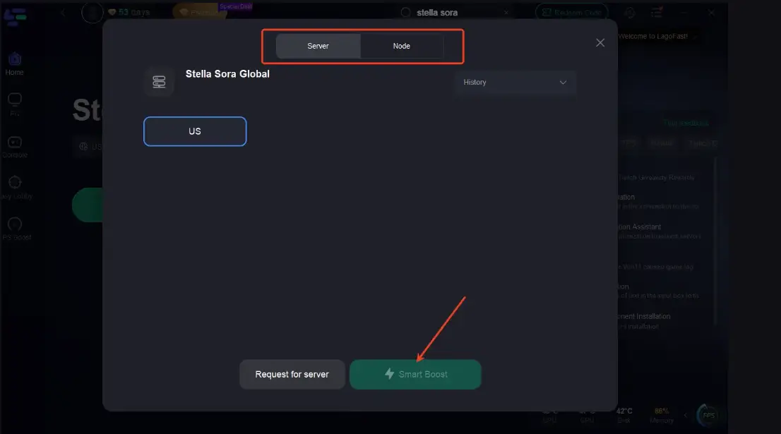 Step 2: Open LagoFast and search for Stella Sora Global.
