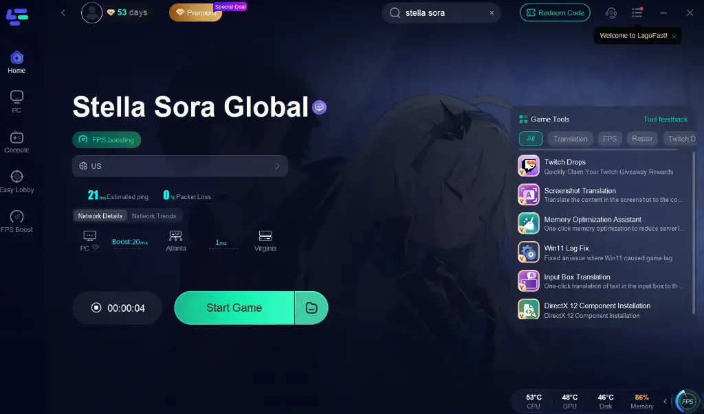 Step 4: Launch Stella Sora through LagoFast and enjoy smooth gameplay.