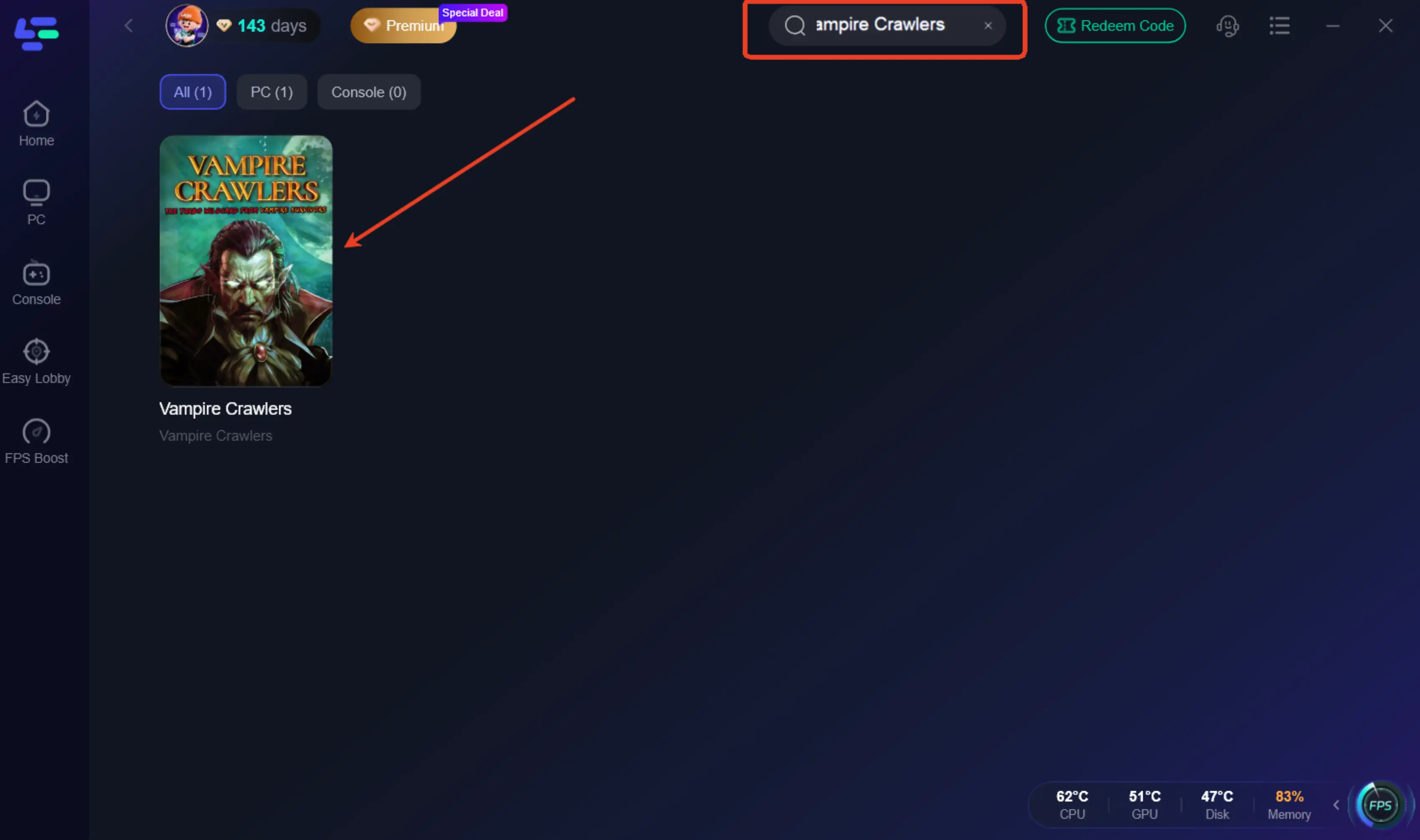 Step 2: After installation, search "Vampire Crawlers" in the search bar and select the game.