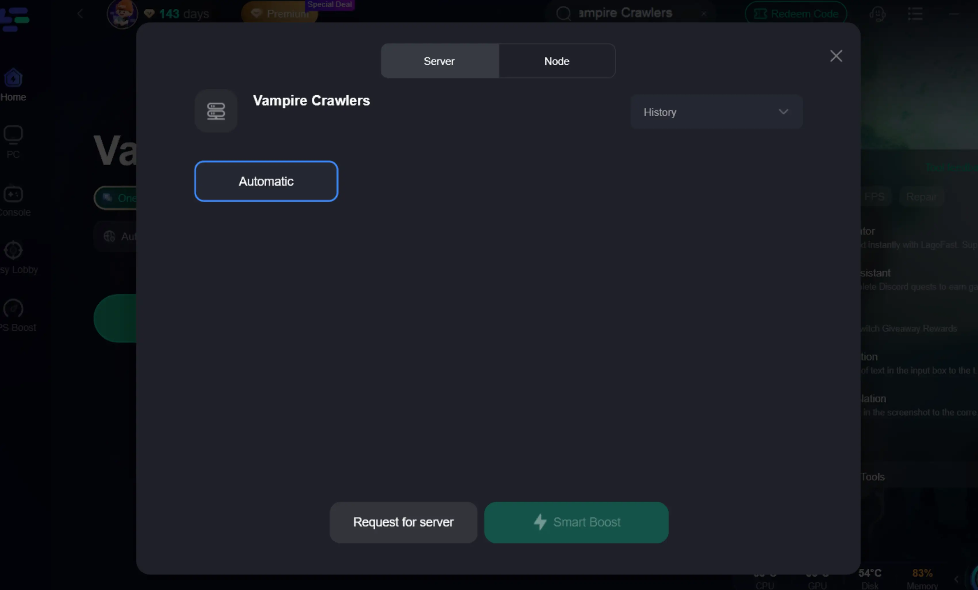 Step 5: Choose your preferred server node and click "Smart Boost" to start optimizing.