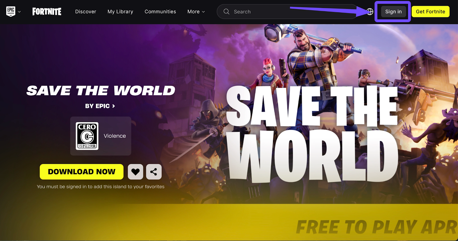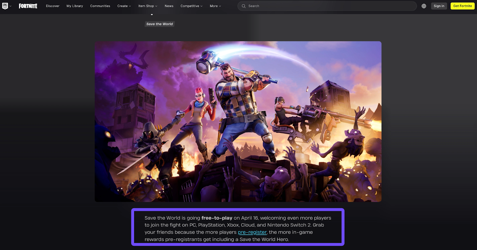 Step 1. Visit the Official Site: Head to the dedicated Fortnite Save the World F2P page.