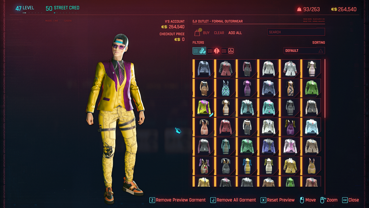 - Click on any of the clothing items, and see how they'll look on your character right away.
