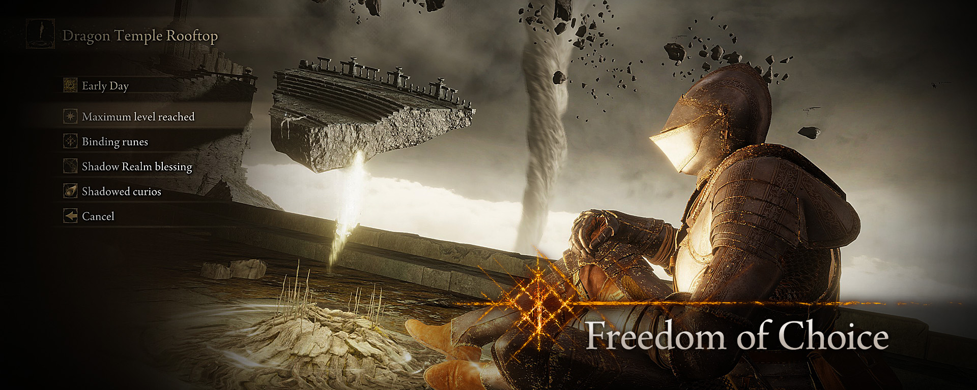 You wish to experience ELDEN RING without the pressure of following "the best strategy" or rushing for "the best weapon".