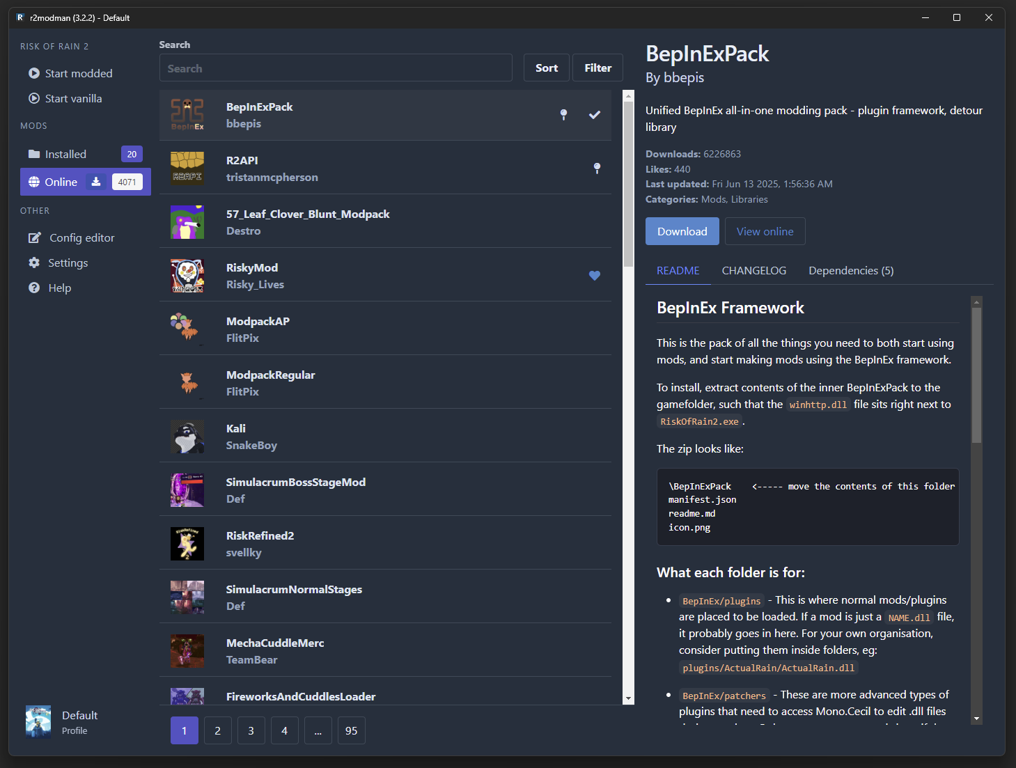If you'd prefer to install platform specific builds then you can find them under the latest GitHub release on the ebkr/r2modmanPlus repository