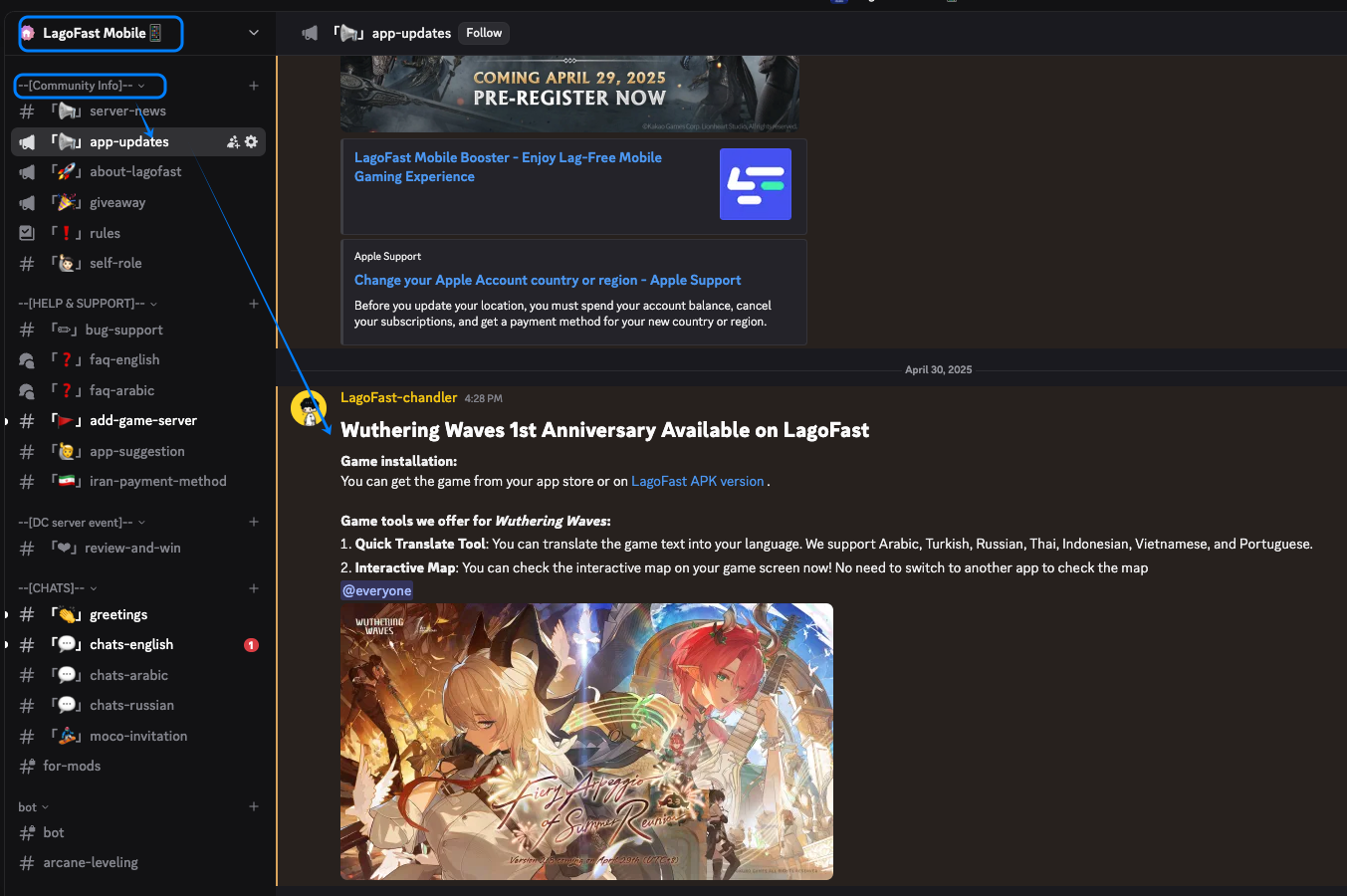 - Check the #app-update channel for step-by-step guides to bypass regional restrictions.