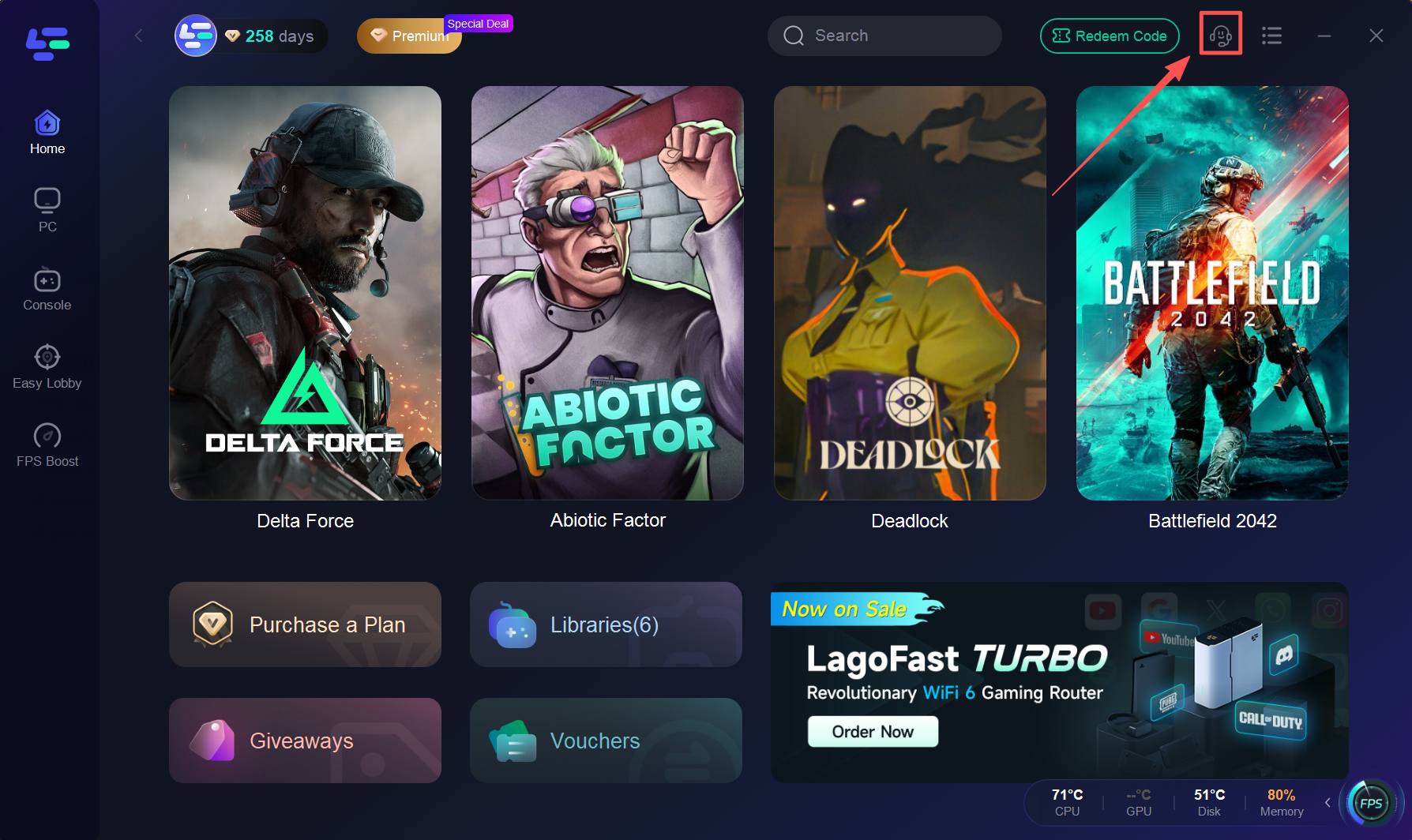 Delta Force’s matchmaking doesn’t force a region choice every try. If the in-game region doesn’t match the LagoFast selection, leave the matchmaking and requeue. Repeat this 5–10 times — usually the match server will align after a few attempts.