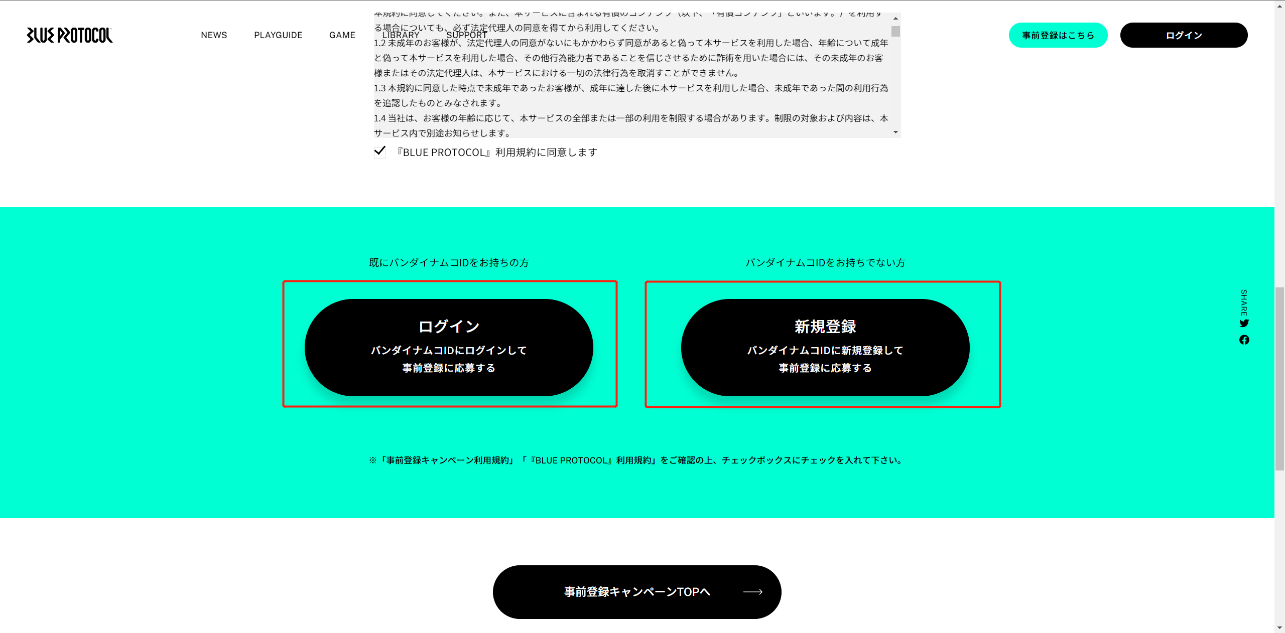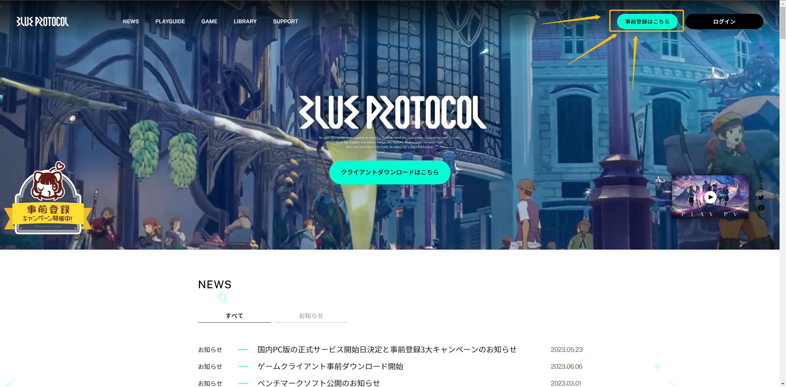 2. Go to the Blue Protocol site, switch the language to Japanese, and click Pre-register in the upper right corner.