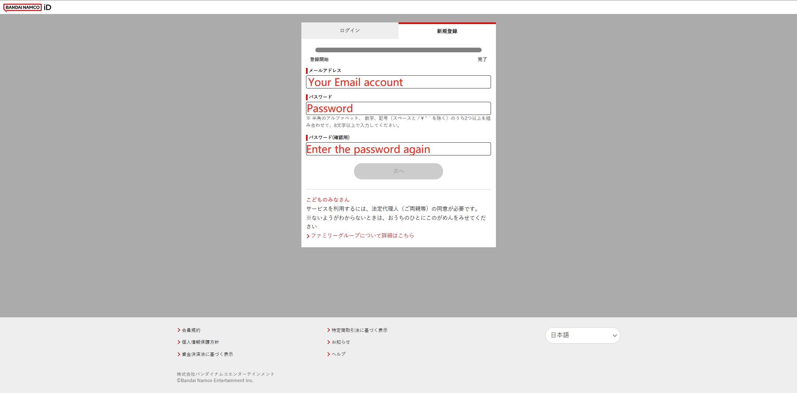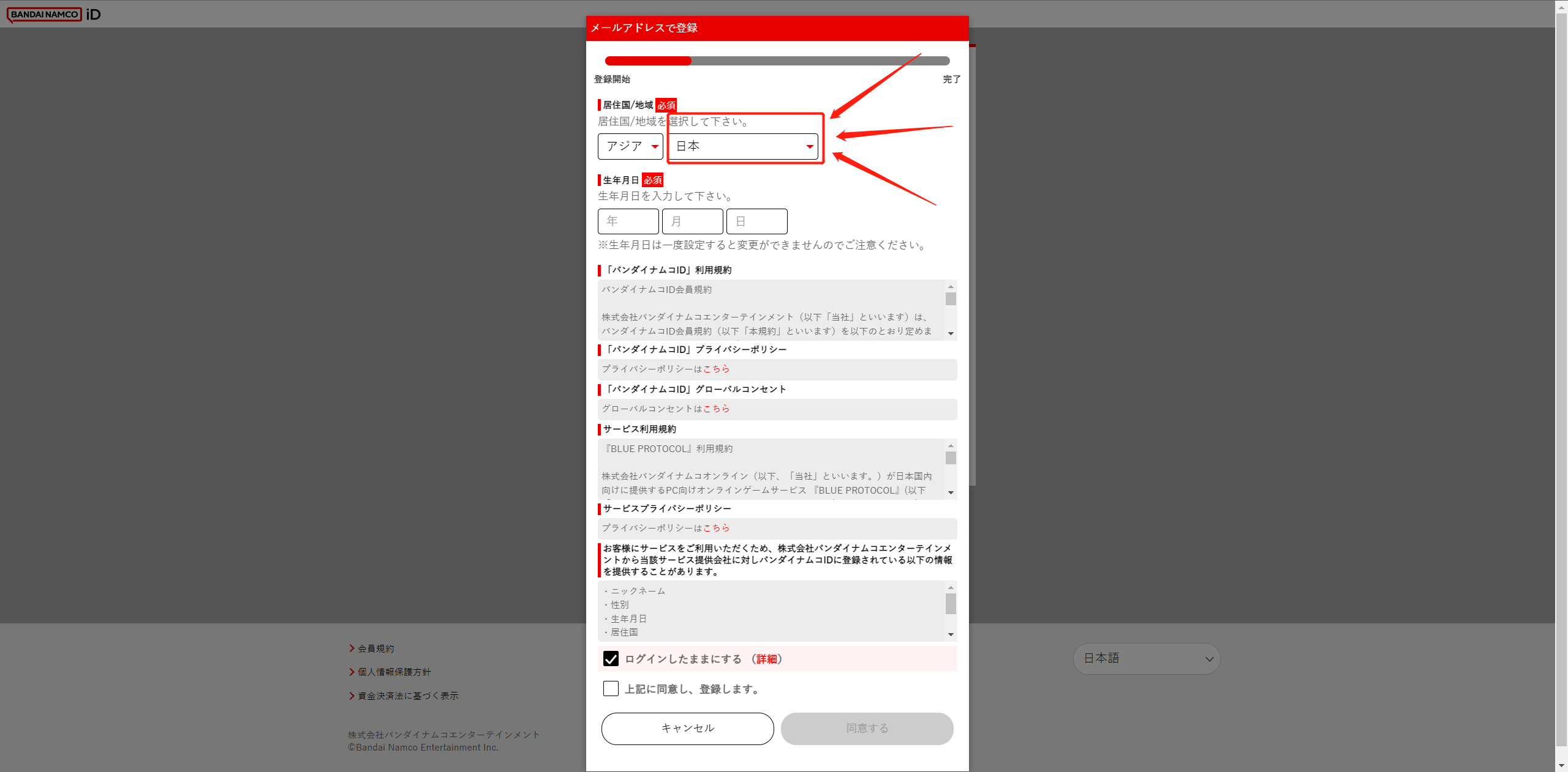 [IMPORTANT]: When filling in your place of residence, you must select Asia-Japan, regardless of where you actually live.