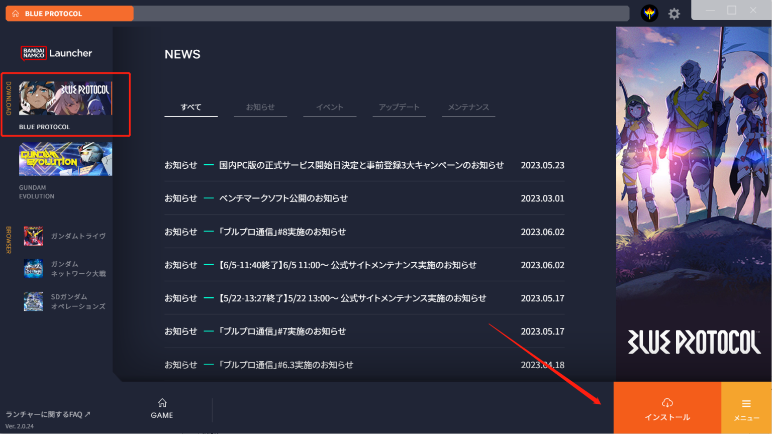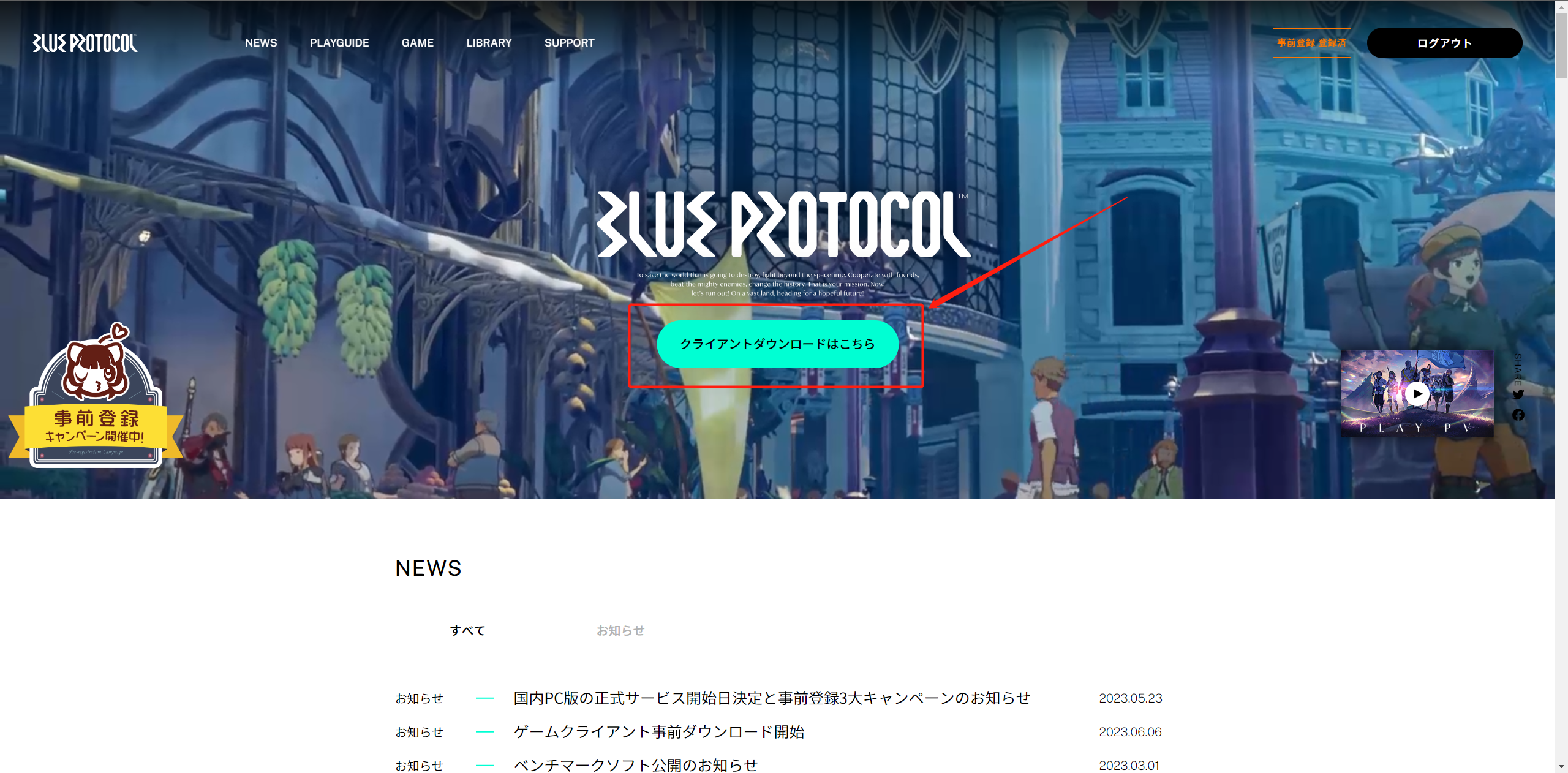9. Go back to the home page of the official website and download the Blue Protocol client.