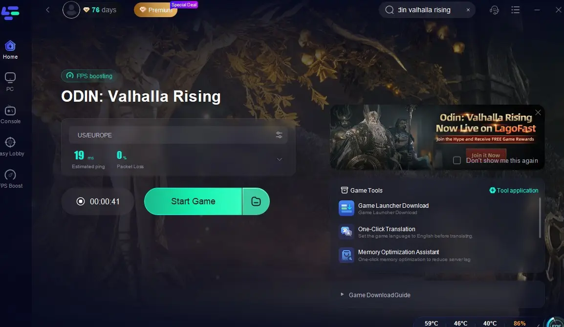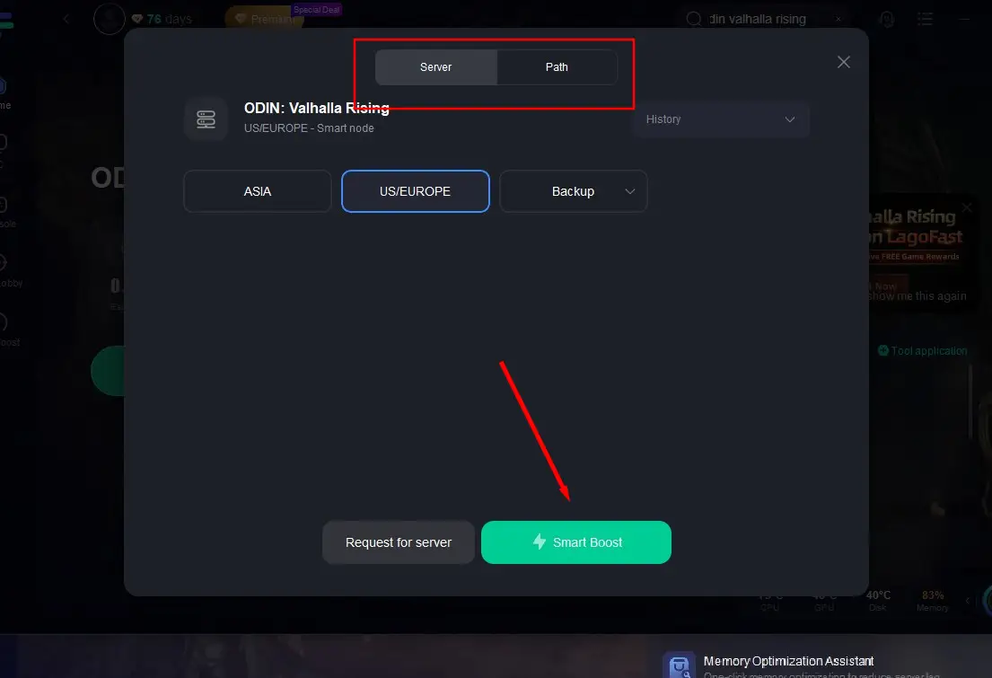 Parte 2: Como corrigir problemas de lag em Odin: Valhalla Rising com LagoFast?