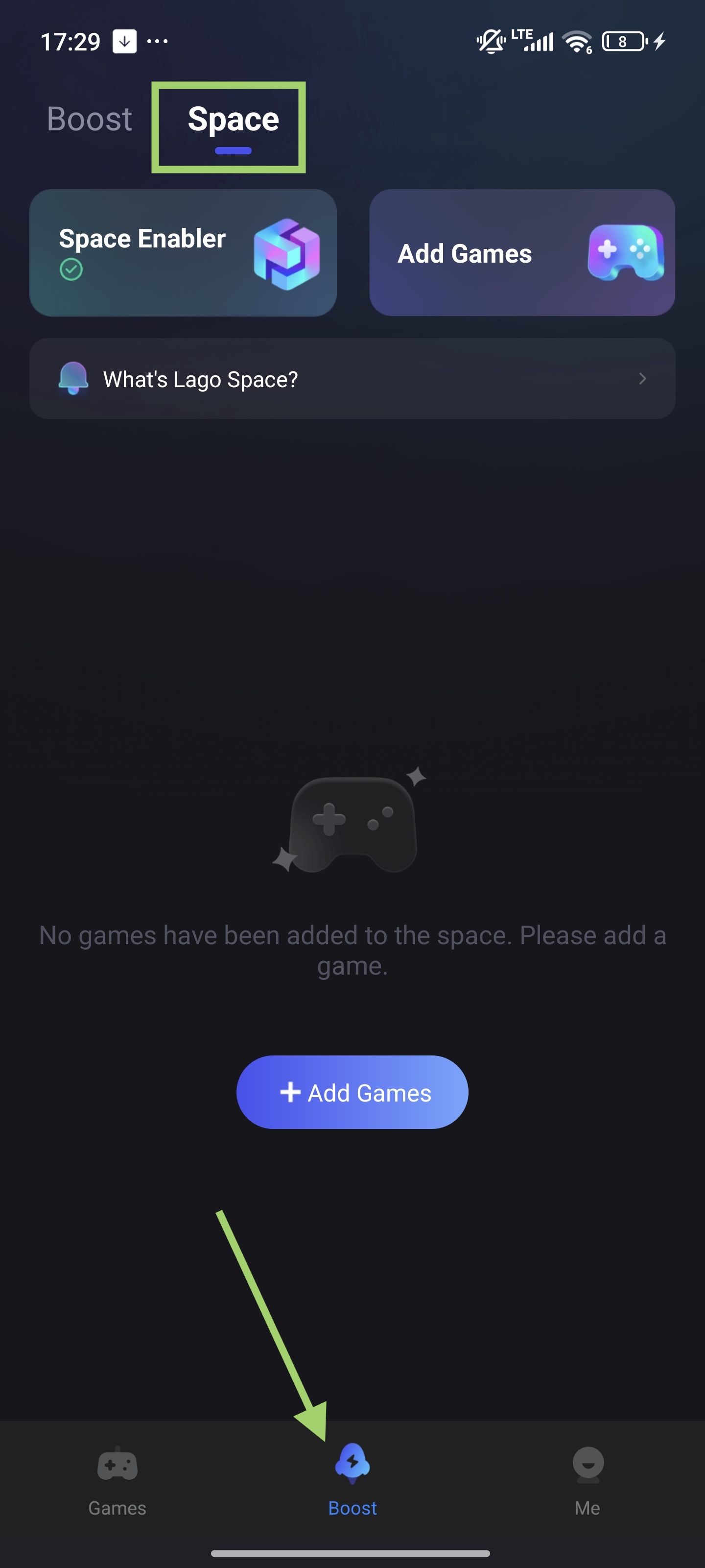 2. Then open the app, turn to "Boost", then switch to the "Space" tab