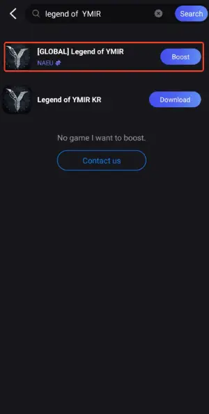 Bước 1: Tìm “Legend of Ymir Global” trong LagoFast và nhấn chọn