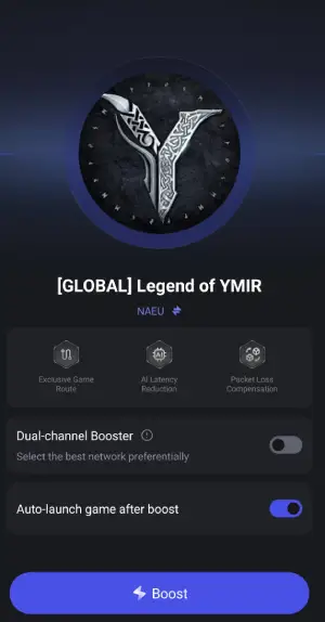 Hiện tại, chỉ phiên bản Hàn Quốc (Legend of Ymir KR) là chính thức hoạt động.Tùy chọn “Legend of Ymir Global” trong LagoFast là placeholder cho bản toàn cầu sắp ra mắt.